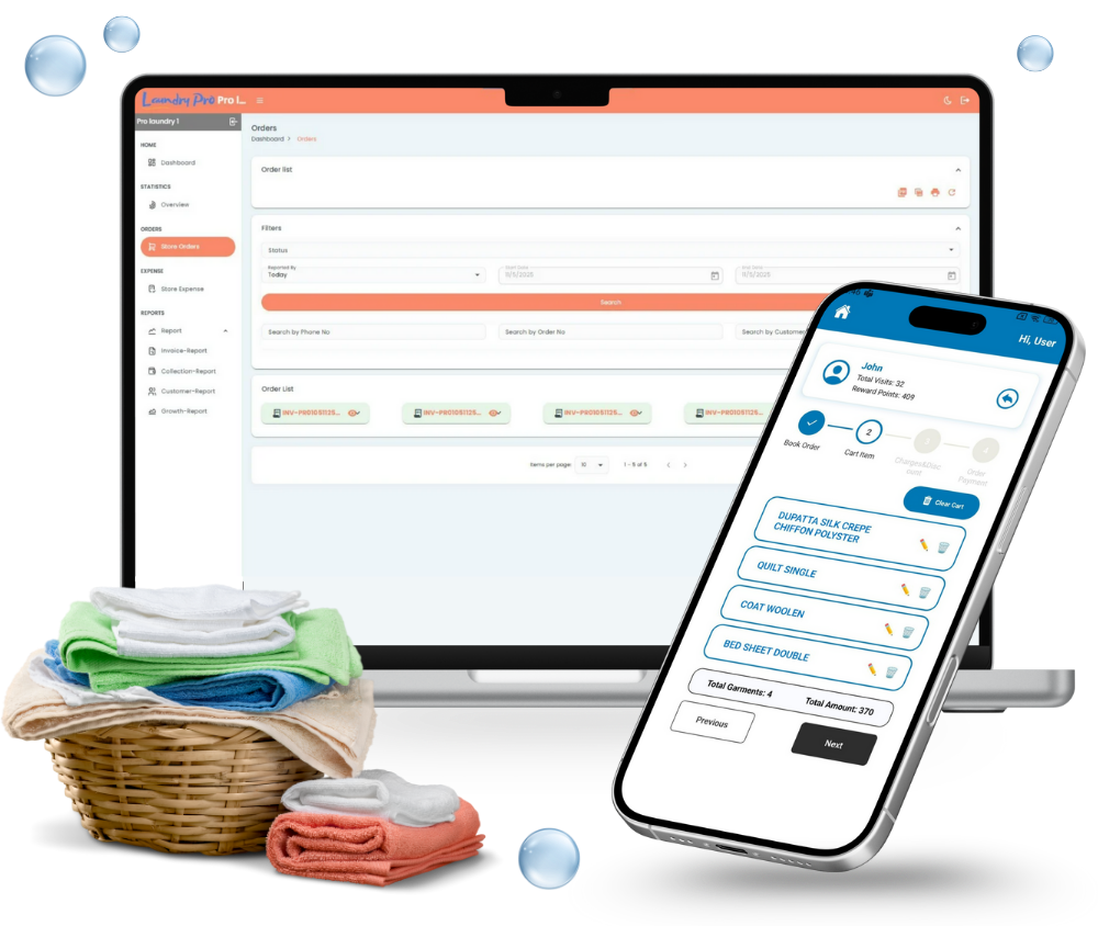 From order placement and tracking to payments and customer portals, we provide everything you need to run a seamless, efficient laundry service.