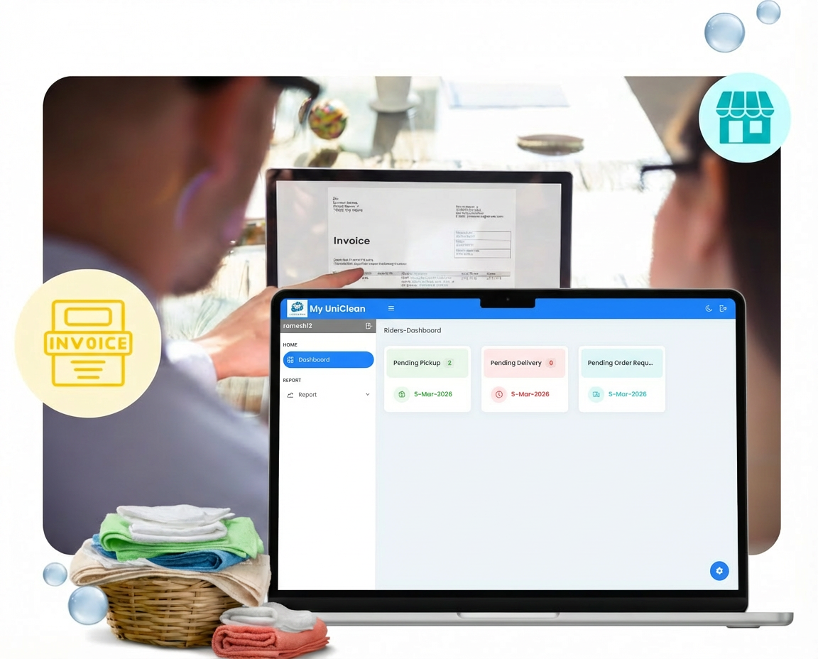 Streamline your laundry pickup and delivery operations with My UniClean Laundry Software. Assign tasks, track progress, and manage riders—all from one dashboard.