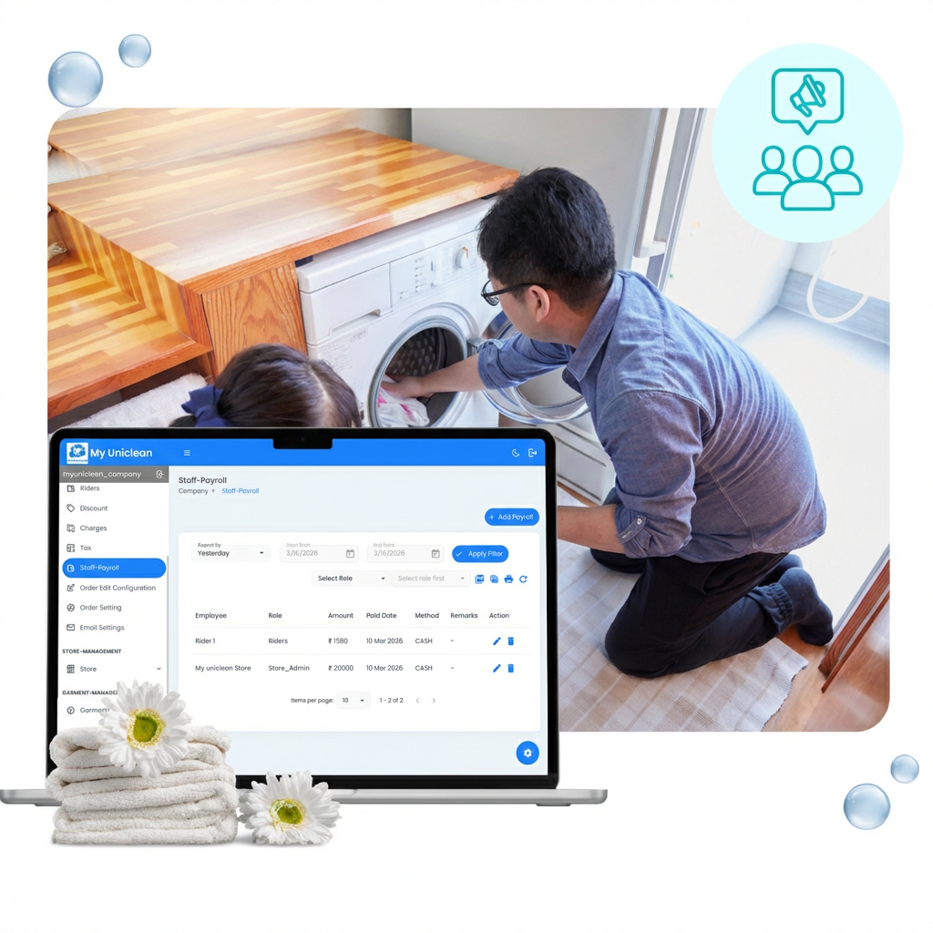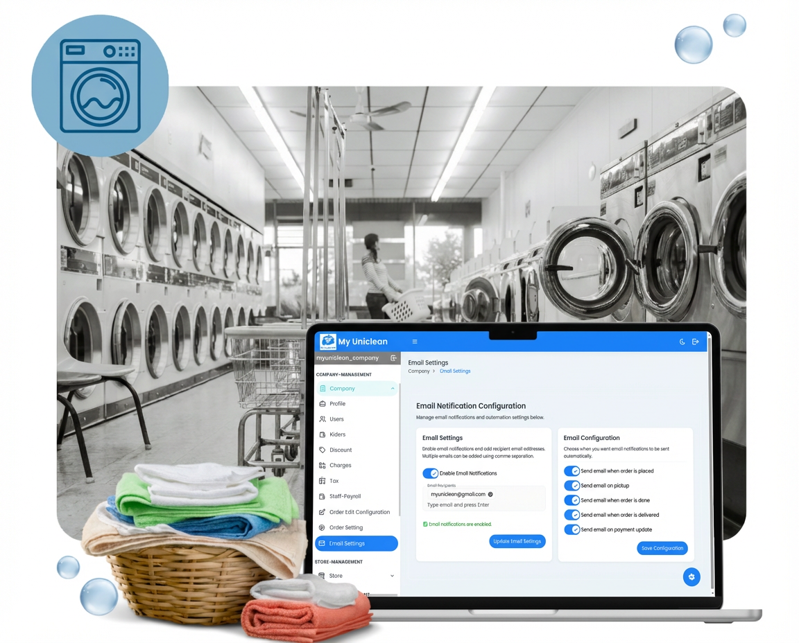 Manage. Automate. Grow — with My UniClean Laundry Management Software.